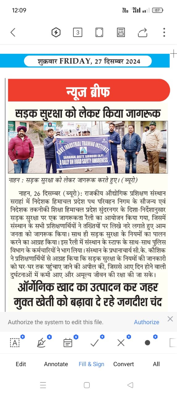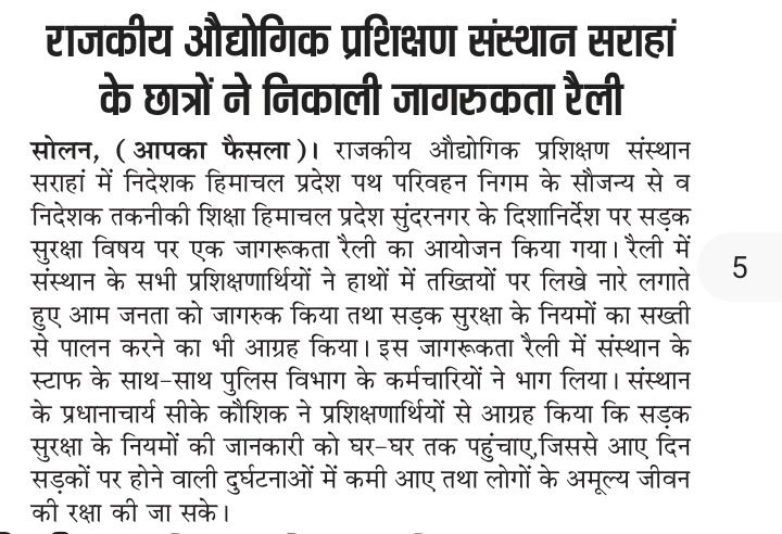 GOVERNMENT OF HIMACHAL PRADESH DEPARTMENT OF TECHNICAL EDUCATION,VOCATIONAL & INDUSTRIAL TRAINING GOVERNMENT INDUSTRIAL TRAINING INSTITUTE, SARAHAN Distt. Sirmour H.P-173024